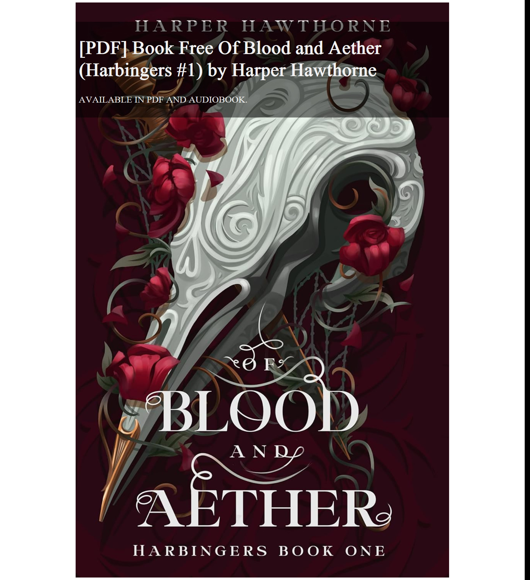 [PDF] Book Free Of Blood and Aether (Harbingers #1) by Harper Hawthorne