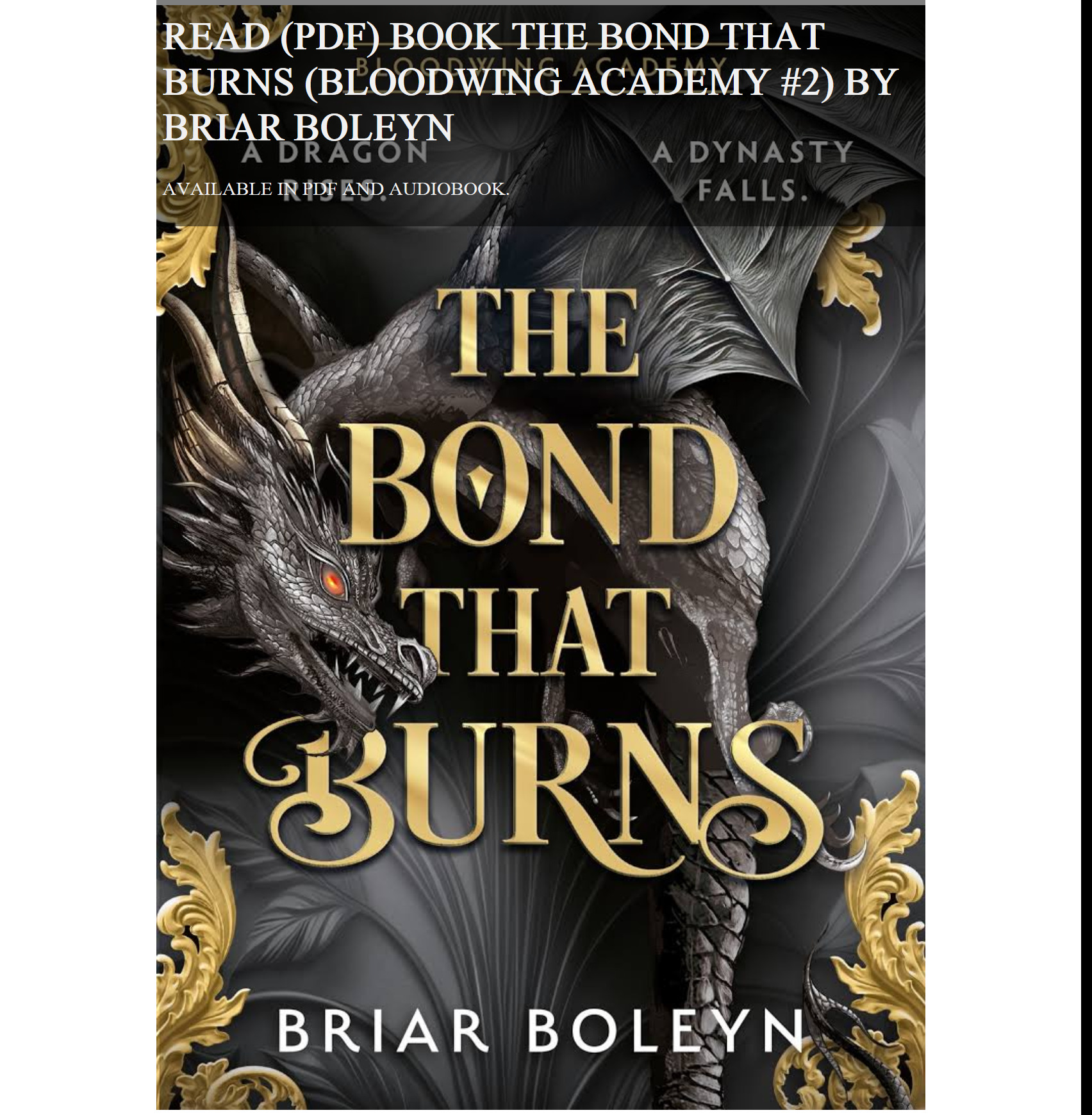 READ (PDF) BOOK THE BOND THAT BURNS (BLOODWING ACADEMY #2) BY BRIAR BOLEYN